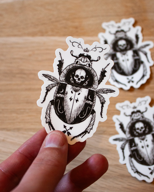 Crown Curse, un scarabée corbeau bien décidé à vous accompagner au quotidien avec sa carapace-bec de belle envergure !